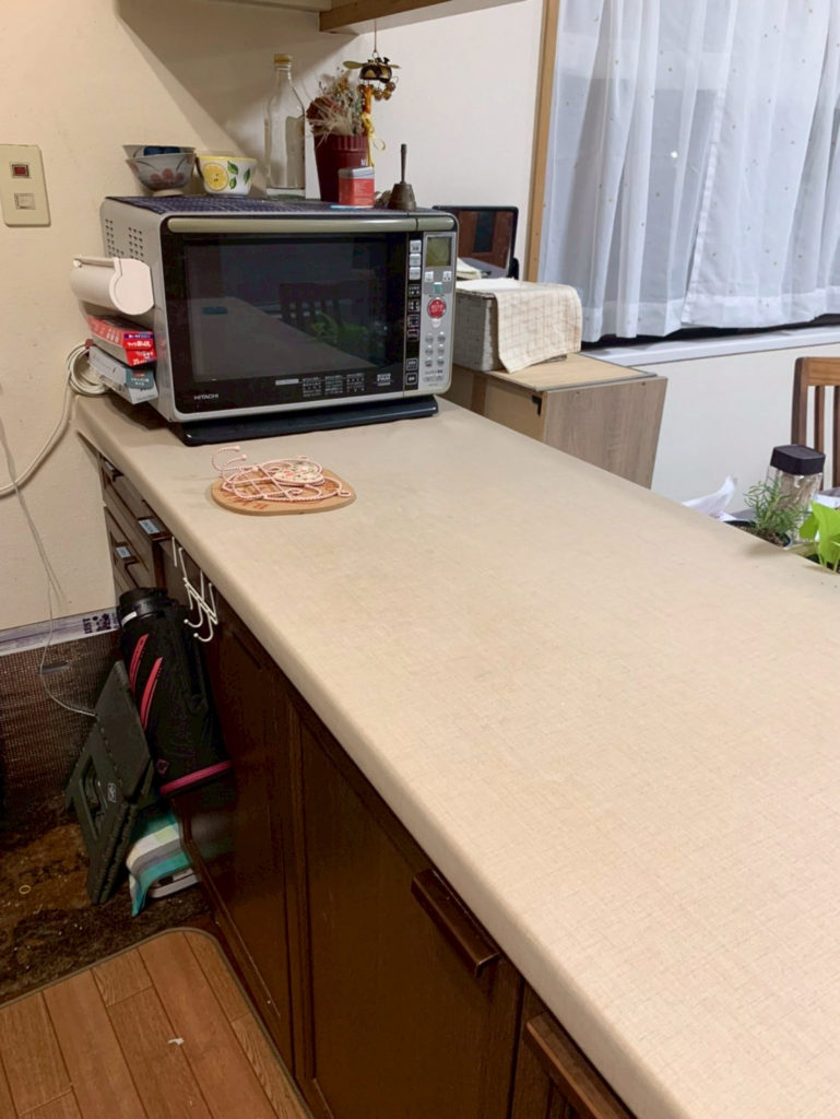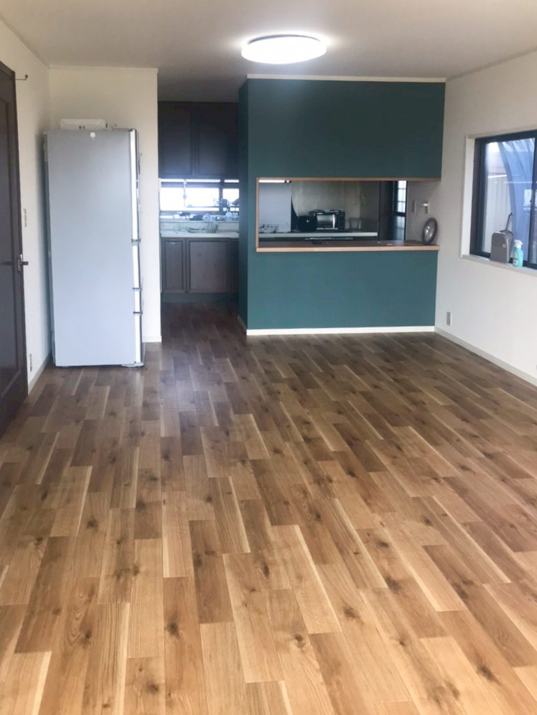 | 施工内容 | LDK・・・天井・壁クロス施工、クッションフロア施工、キッチンカウンターシート施工 |