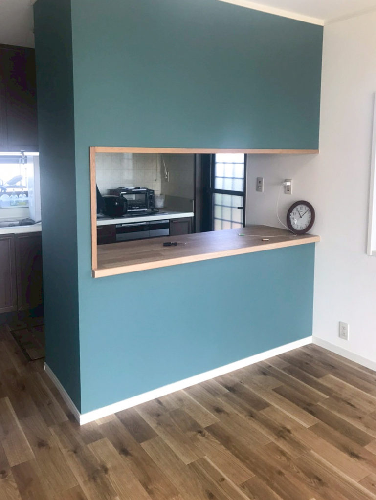 | ご提案 | 既存のフローリングを剥がすことなく上からクッションフロアを施工すればご予算的にも安価に施工が可能です。 窓枠や建具枠は奥様がDIYにて塗装をしていました。クロスを施工する前であれば塗装がはみ出ても問題ないため思いのままに塗装していただいて構いません。 |